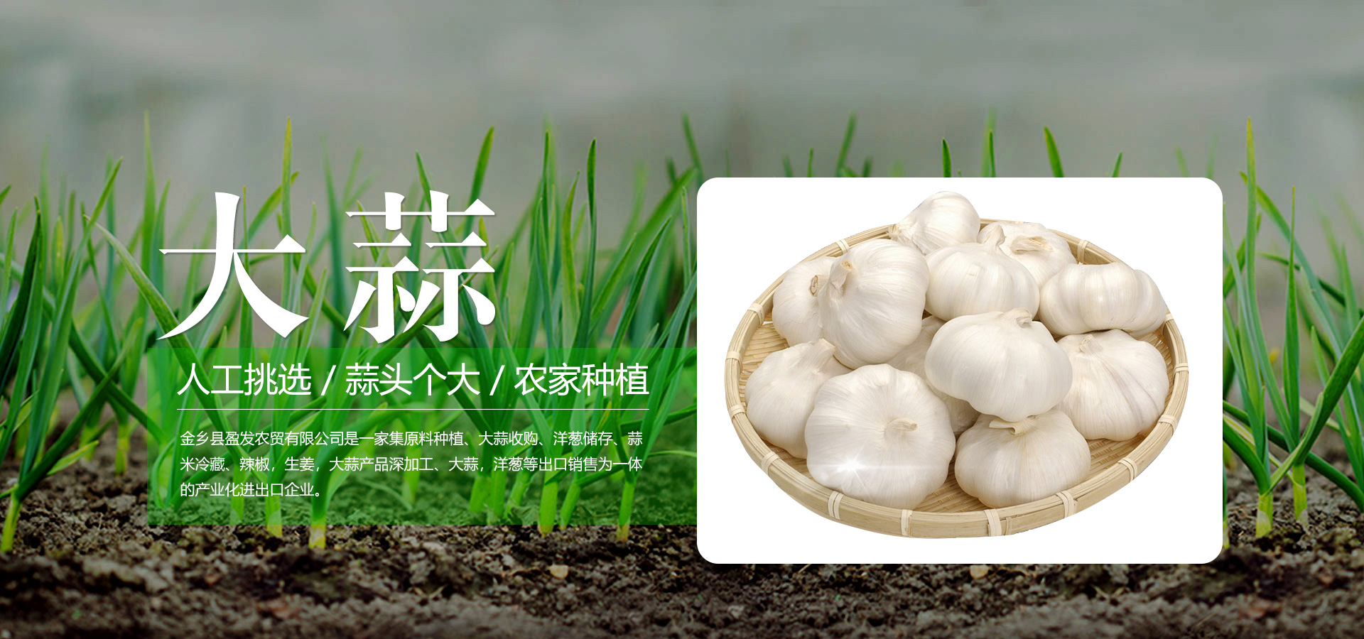 金乡县盈发农贸有限公司位于中国大蒜之乡——山东金乡,交通便利,环境优越,集原料种植、收购、储存、冷藏、产品深加工、出口销售为一体的市级农业产业化进出口企业。公司自建于山东省济宁市金乡县大蒜基地中心。方圆拥有种植大蒜200万亩。公司凭着丰富的高品质产品资源和先进的冷藏技术,精细的加工流程,生产出优质的标准化出口级食品。公司经营产品:大蒜,蒜米,蒜片,蒜粒,蒜粉,黑蒜,洋葱,辣椒,蒜苔,生姜等农产品的进出口贸易。金乡县盈…