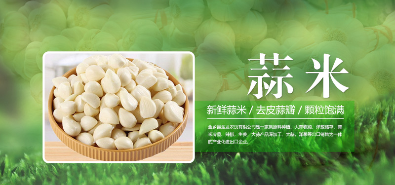 金乡县盈发农贸有限公司位于中国大蒜之乡——山东金乡,交通便利,环境优越,集原料种植、收购、储存、冷藏、产品深加工、出口销售为一体的市级农业产业化进出口企业。公司自建于山东省济宁市金乡县大蒜基地中心。方圆拥有种植大蒜200万亩。公司凭着丰富的高品质产品资源和先进的冷藏技术,精细的加工流程,生产出优质的标准化出口级食品。公司经营产品:大蒜,蒜米,蒜片,蒜粒,蒜粉,黑蒜,洋葱,辣椒,蒜苔,生姜等农产品的进出口贸易。金乡县盈…